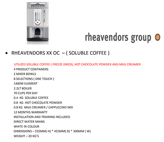 Rheavendors | XX OC - (Soluble Coffee Machine)